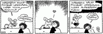 – Wagners lips ask for permission to land on Viivi’s lips. – Permission granted. – Wagner’s legs ask for permission to land on the pub downstairs. – Permission denied.