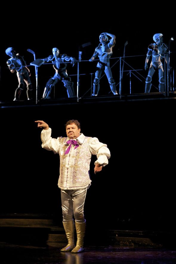 Snow White’s spouse, Veijo (Juha Muje), and the dwarves. Photo: Laura Malmivaara, 2011